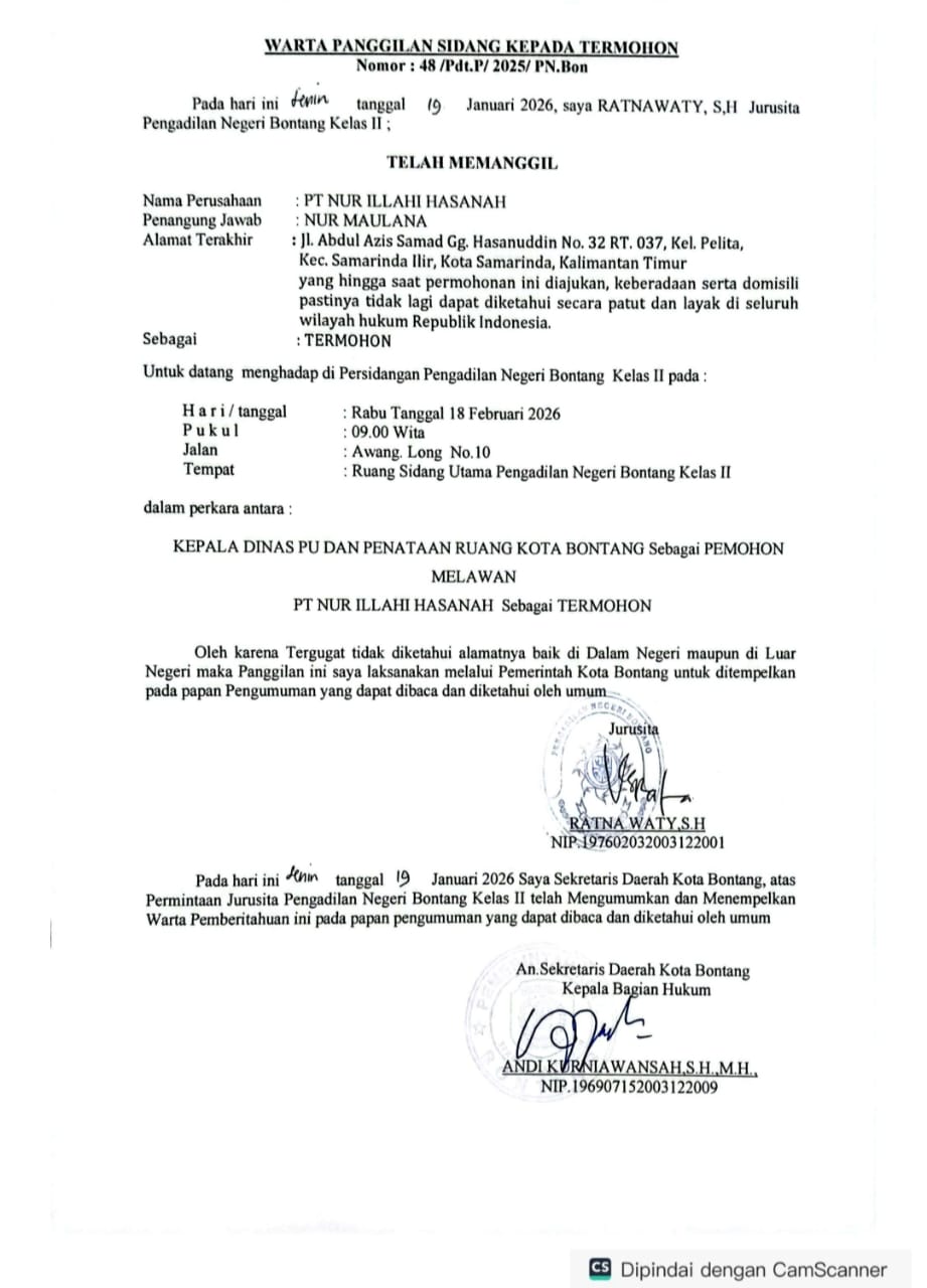 BERITA PANGGILAN SIDANG KEPADA TERMOHON