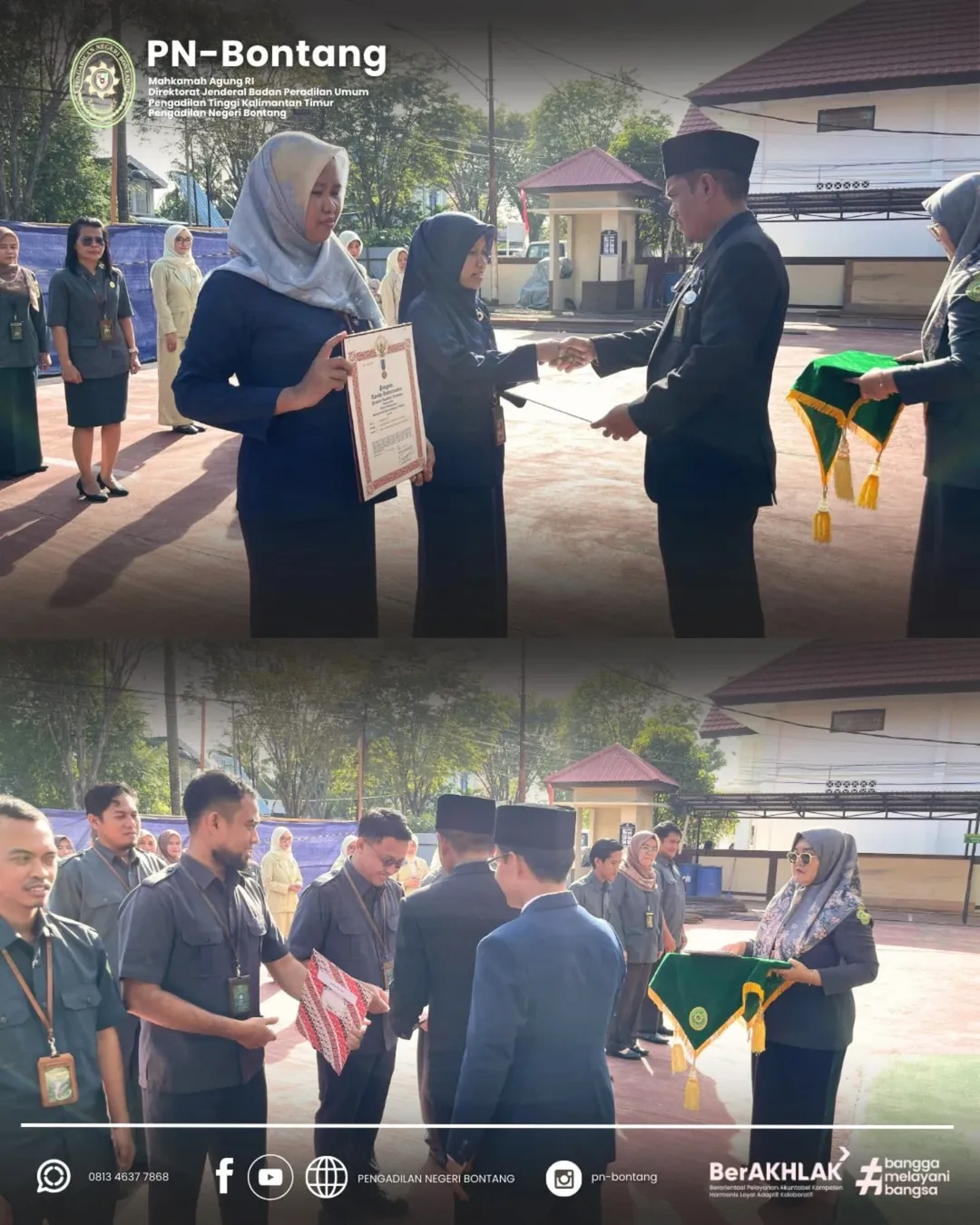 Agenda penting dalam upacara kali ini adalah penganugerahan Satya Lencana Sewindu kepada aparatur yang telah mengabdikan diri dengan penuh dedikasi selama delapan tahun. Selain itu, juga dilaksanakan penyerahan Surat Keputusan (SK) Pengangkatan Pegawai Pemerintah dengan Perjanjian Kerja (PPPK) secara simbolis bagi pegawai di PN Bontang dan PA Bontang.