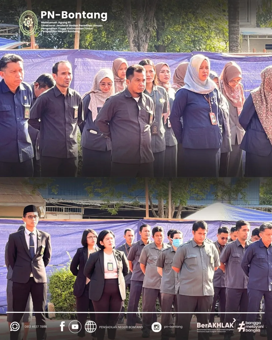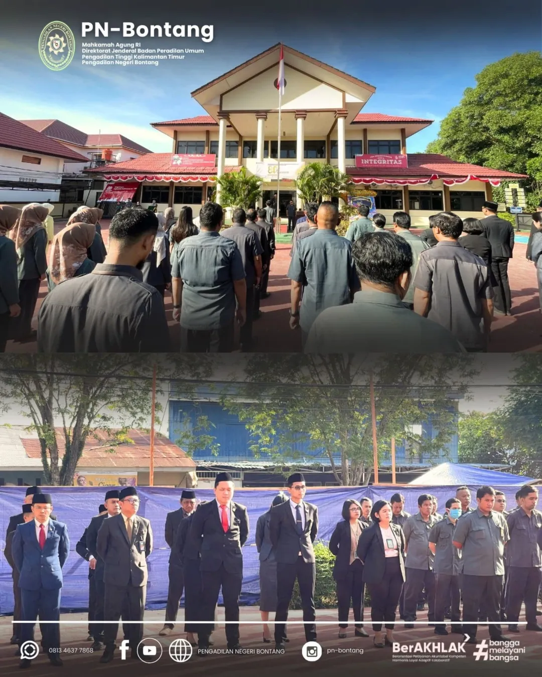 Bertindak sebagai Pembina Upacara, Ketua PN Bontang Rahmat Dahlan, S.H., menyampaikan pentingnya momentum HUT Mahkamah Agung sebagai wujud refleksi bagi seluruh aparatur peradilan dalam meningkatkan integritas, profesionalitas, serta pelayanan hukum kepada masyarakat.