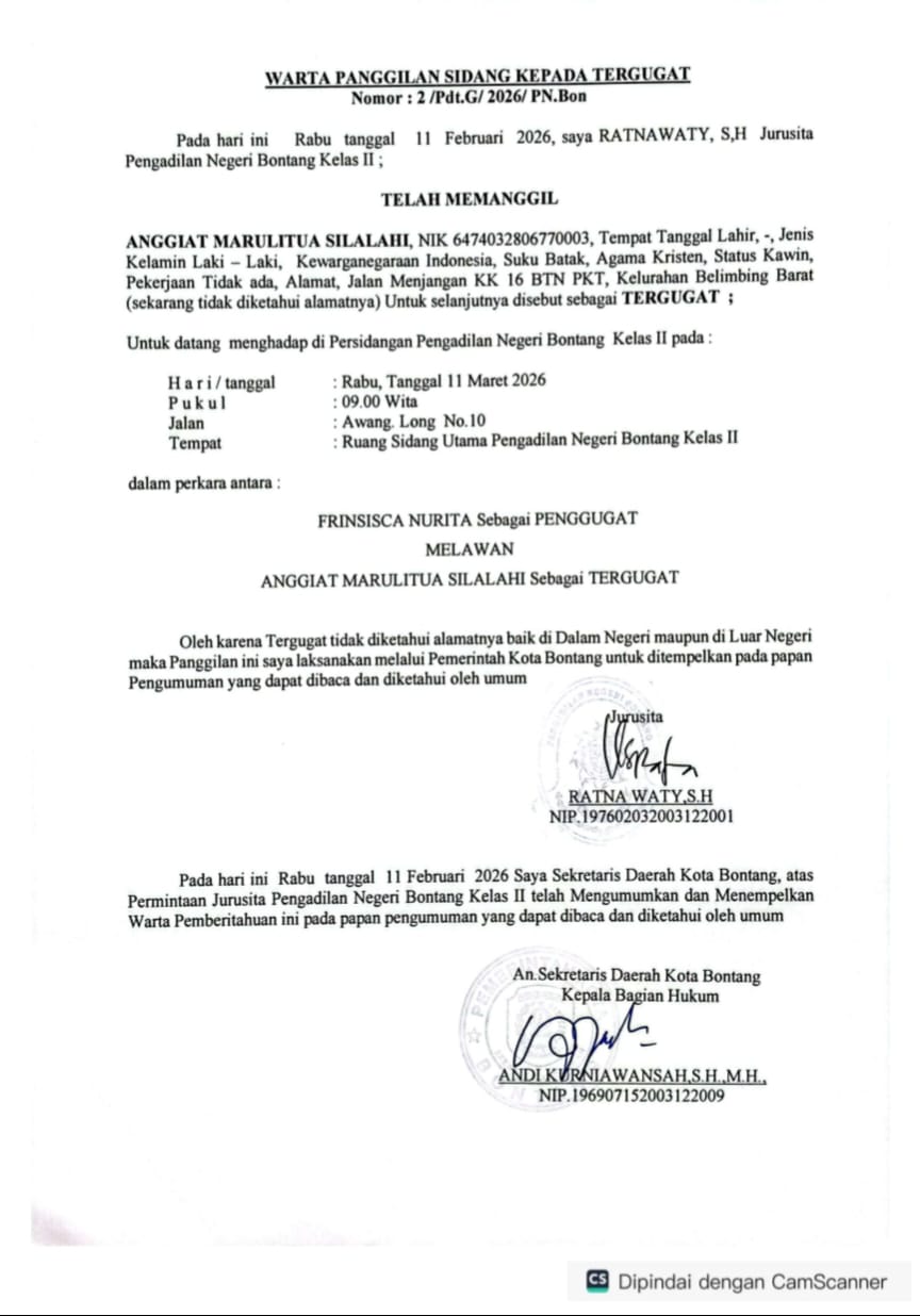 BERITA PANGGILAN SIDANG KEPADA TERMOHON