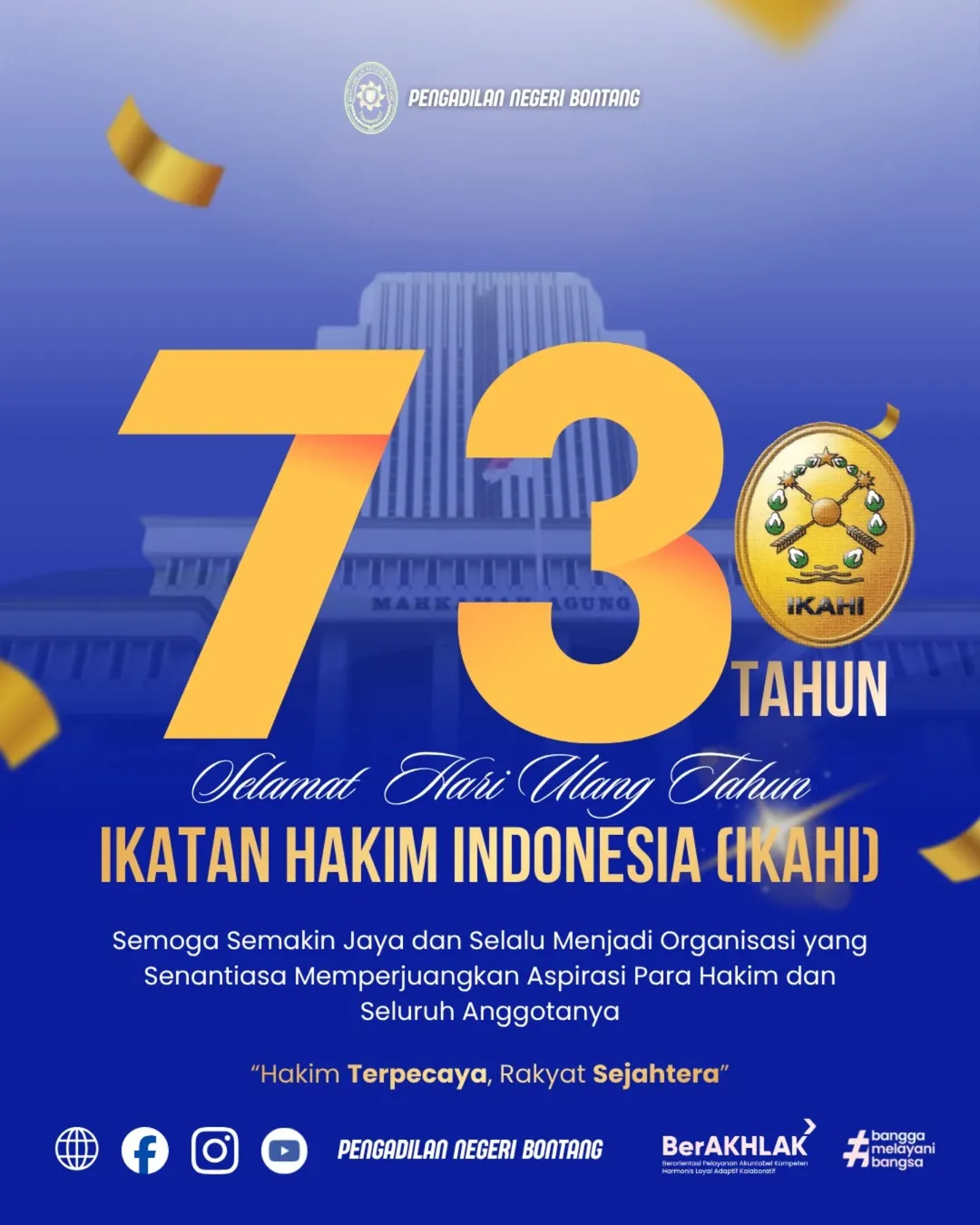 Semoga IKAHI senantiasa menjadi organisasi yang kuat, berintegritas, dan terus memperjuangkan aspirasi para hakim serta seluruh anggotanya.