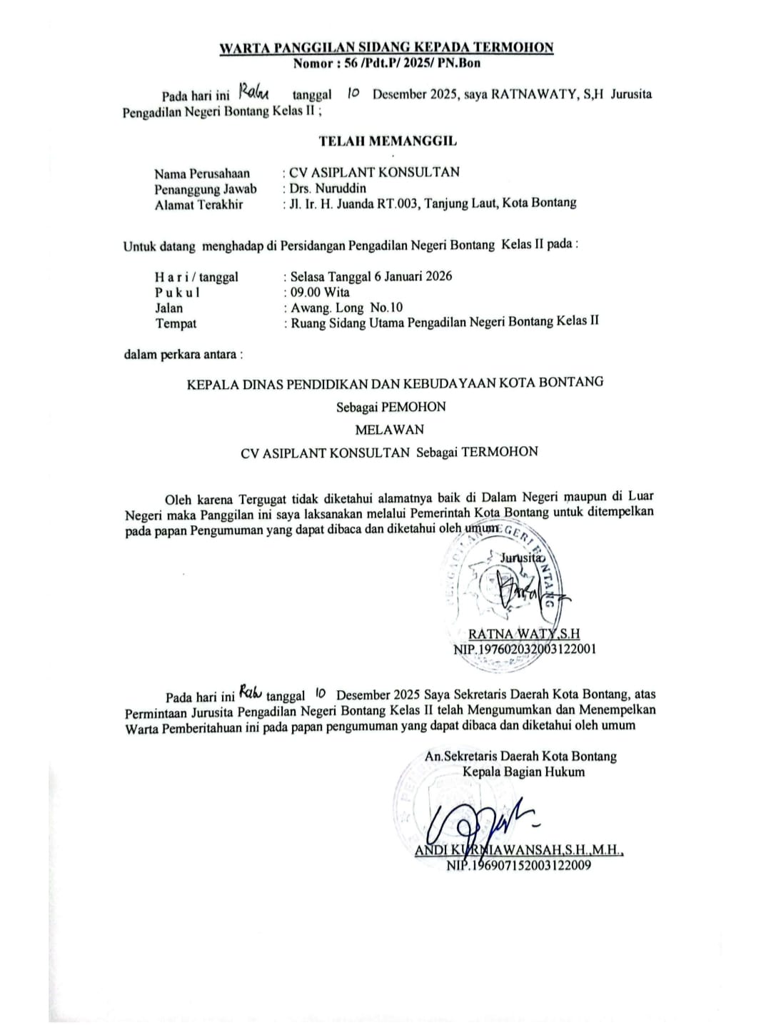 BERITA PANGGILAN SIDANG KEPADA TERMOHON