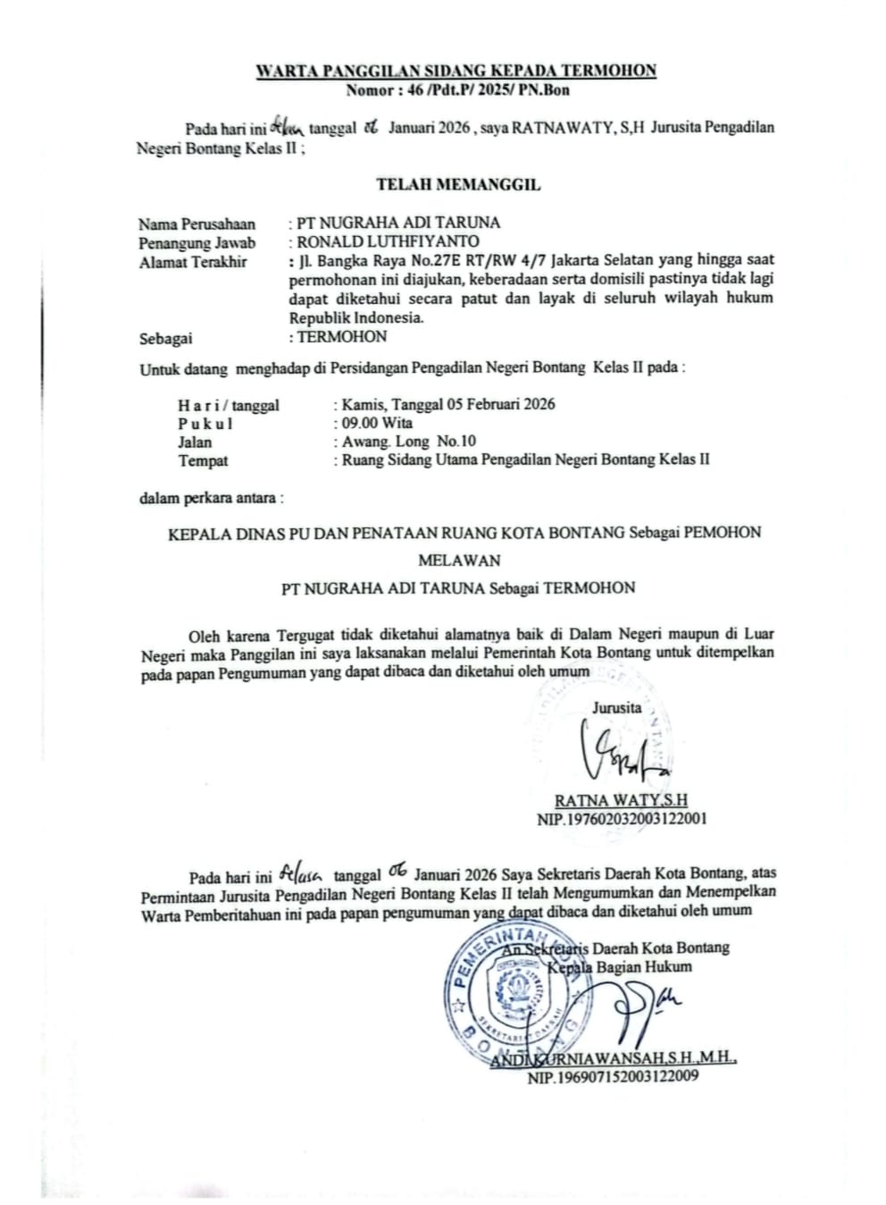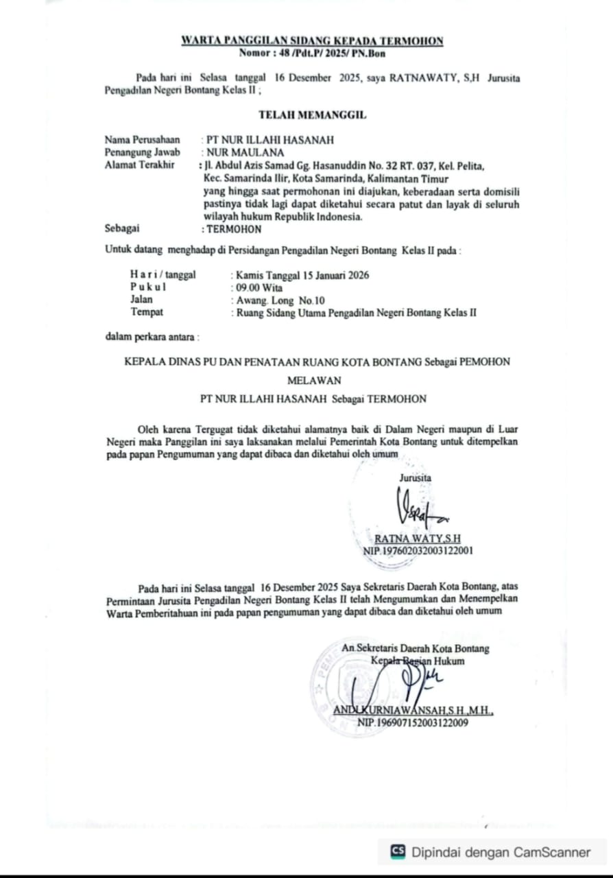 BERITA PANGGILAN SIDANG KEPADA TERMOHON