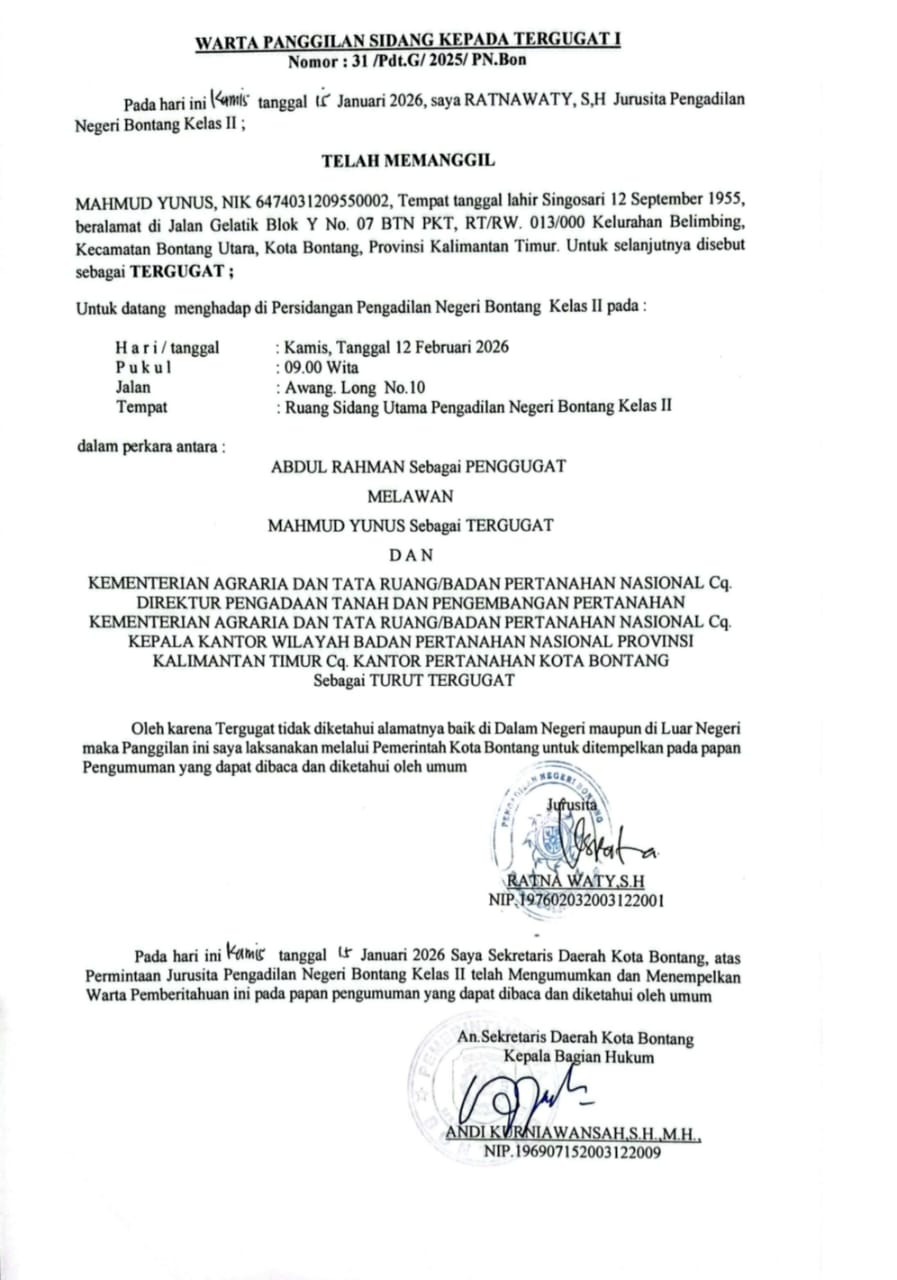 BERITA PANGGILAN SIDANG KEPADA TERMOHON.