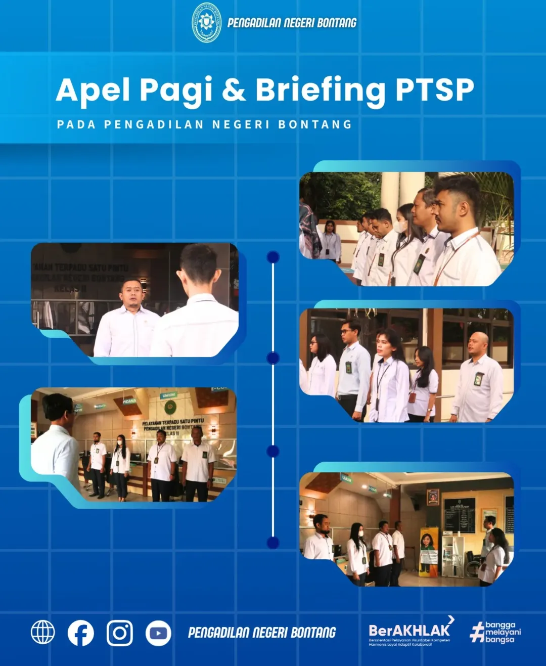 Melalui kegiatan apel pagi dan briefing PTSP ini, diharapkan seluruh aparatur Pengadilan Negeri Bontang dapat terus meningkatkan integritas, kinerja, serta komitmen dalam memberikan pelayanan publik yang prima, sejalan dengan nilai-nilai BerAKHLAK dan semangat Bangga Melayani Bangsa.