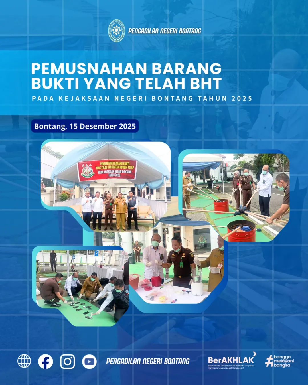 Bontang, 15 Desember 2025 — Pengadilan Negeri Bontang turut menghadiri kegiatan Pemusnahan Barang Bukti yang Telah Berkekuatan Hukum Tetap (BHT) yang diselenggarakan oleh Kejaksaan Negeri Bontang pada tahun 2025. Kegiatan ini dilaksanakan sebagai bentuk pelaksanaan putusan pengadilan yang telah memperoleh kekuatan hukum tetap serta komitmen bersama dalam penegakan hukum yang transparan dan akuntabel.