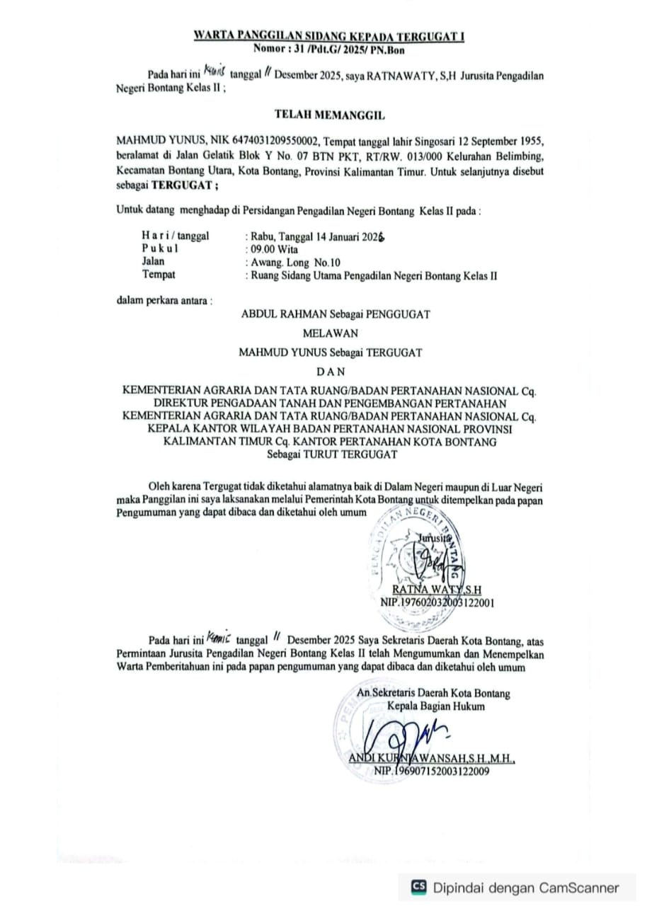 BERITA PANGGILAN SIDANG KEPADA TERMOHON