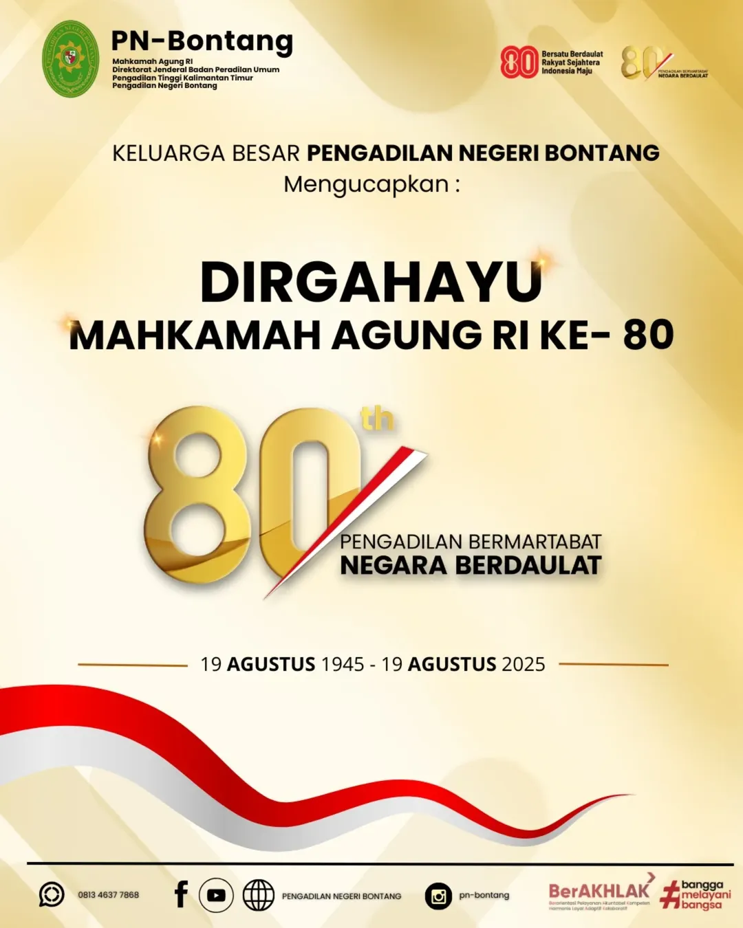 Rangkaian kegiatan tersebut menjadi wujud apresiasi sekaligus dorongan motivasi bagi aparatur peradilan agar terus bekerja dengan penuh tanggung jawab. Dengan tema besar peringatan tahun ini, “Pengadilan Bermartabat, Negara Berdaulat”, upacara HUT MA ke-80 diharapkan memperkokoh semangat pengabdian demi terwujudnya peradilan yang agung dan berkeadilan.