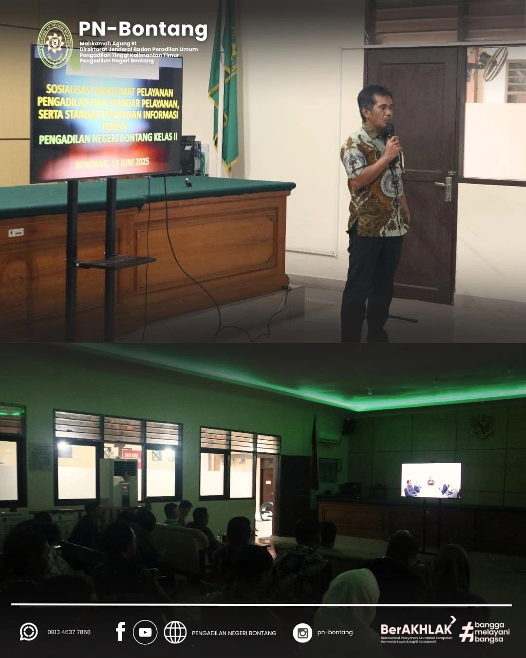 Kegiatan apel ini diikuti oleh seluruh aparatur Pengadilan Negeri Bontang, baik hakim, pegawai struktural, fungsional, maupun tenaga honorer. Bertindak sebagai pembina apel yaitu Bapak Ngurah Manik Sidartha, S.H. Dalam amanatnya, beliau menekankan pentingnya komitmen terhadap disiplin kerja serta peningkatan kualitas pelayanan publik sebagai bagian dari pelaksanaan tugas dan fungsi aparatur peradilan.