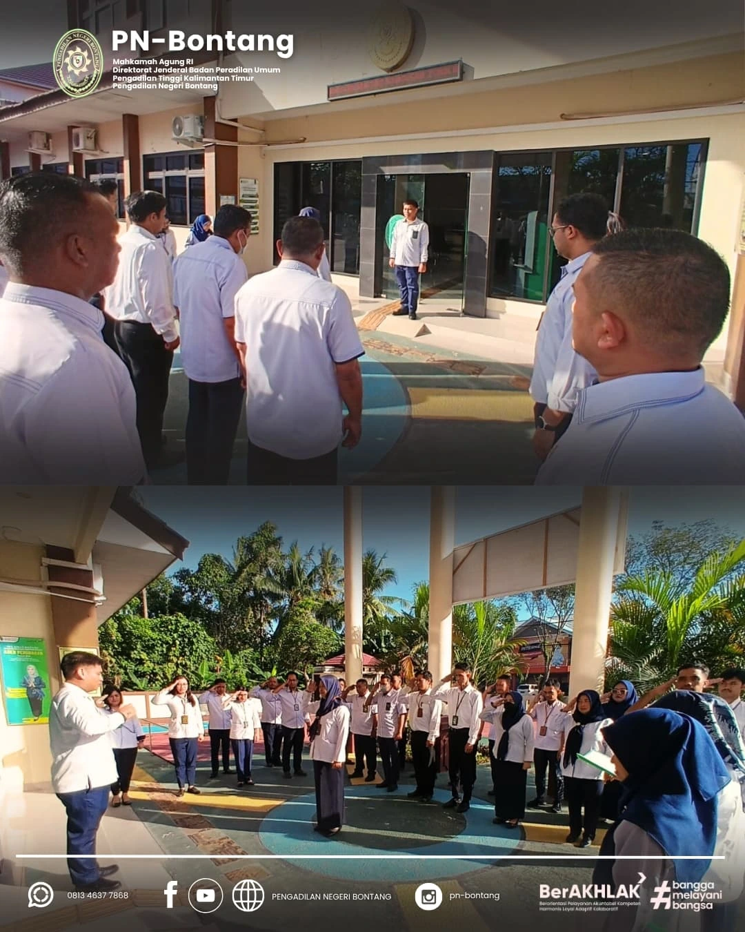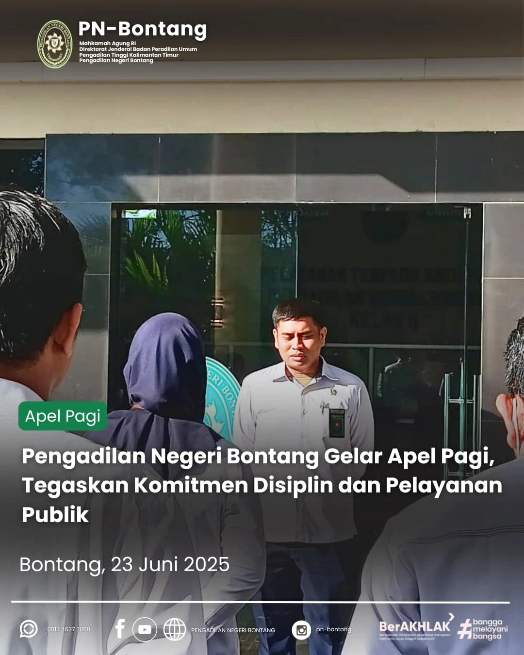 Pengadilan Negeri Bontang melaksanakan apel pagi rutin pada hari Senin, 23 Juni 2025, bertempat di halaman kantor Pengadilan Negeri Bontang.